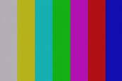 ![]() Don't panic.This is actually clever. The RGB video signals on the left will form full-field colour bars, as seen above. Compare the video waveforms to the bars... all four bars on the left have green, the three on the right have no green. The "red" video turns on and off every two bars, so white and yellow have red, cyan and green have no red, etc. Every other bar has blue /no blue and so on.Those three signals are added together to the proportions noted. Green gets the biggest percentage because we are most sensitive to green. Blue draws the short-stick for the opposite reason. This results in the signal noted as "Y", which is the main video signal broadcast. The monochrome TV sees this as bars stepping from white to black. Now, whip up some "minus-Y" ... just the negative of "Y", and add the red and blue channels to it. That gives you "R-Y" and "B-Y". "G-Y" is NOT NEEDED, since you can rebuild all three colour channels at the receiver with just Y, R-Y, and B-Y. Recap... We send colour with just the brightness of Y, and the two smaller colour difference components R-Y and B-Y Bonus... the colour-difference components are bi-polar. They are zero when there is no colour, and have positive and negative values depending on the colour.