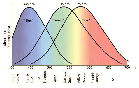 The human eye has sensors for Red, Green, and Blue, and any colour that you see is a blend of those colours. Each sensor has an area of overlap with its neighbour(s). The colour filters in the camera, and the filters/phospers in the display device are similar. There are two reasons to point this out... |