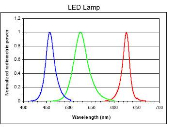 One, now you know why LED lighting sucks. The R, G, and B outputs are spikey in the spectrum, and some colours are rendered strangely under LED "White" light. |