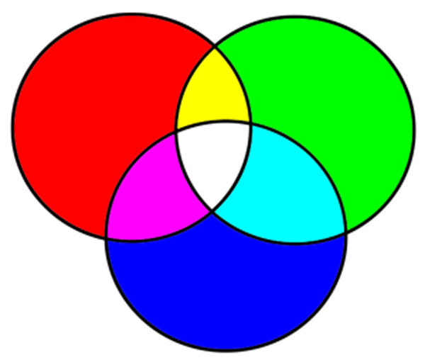 Red, Green, and Blue are ADDITIVE primaries used when adding coloured light together. Together, they make white. |